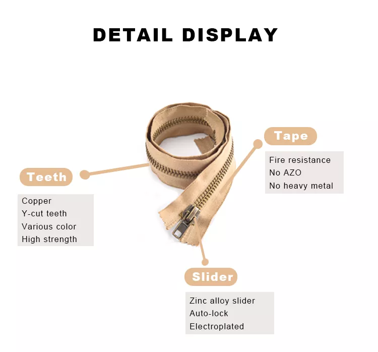 Som en kinesisk tillverkare med över två decennier av blixtlåsproduktionsexpertis använder TRC precisionstekniker och strikt kvalitetskontroll för att garantera exceptionell jämnhet, styrka och säkerhet i varje blixtlås. Dessutom uppfyller TRC brandsäkra metalldragkedjor inte bara internationella säkerhetsstandarder utan kan också anpassas till varje kunds specifika krav vad gäller specifikationer, färger och dimensioner, vilket gör dem lämpliga för ett brett spektrum av applikationer. Med TRC väljer du en pålitlig kinesisk blixtlåstillverkare som erbjuder den perfekta lösningen för dina produkter: en kombination av säkerhet, hållbarhet och professionell kvalitet.