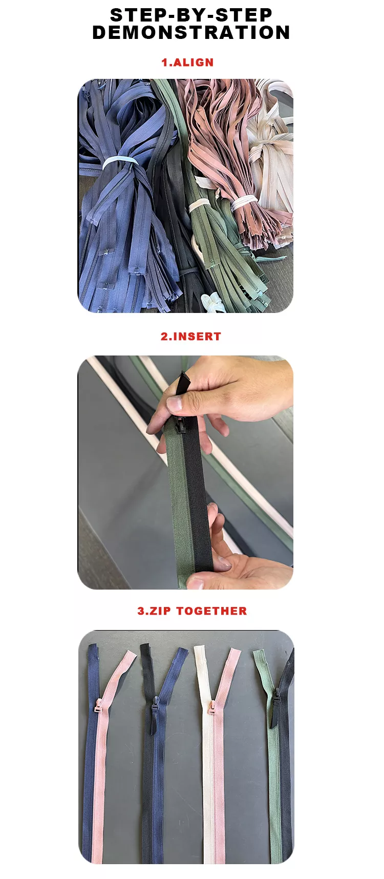 3. Alla våra dragkedjor kan anslutas sömlöst oavsett färg, längd eller produktionssats.
