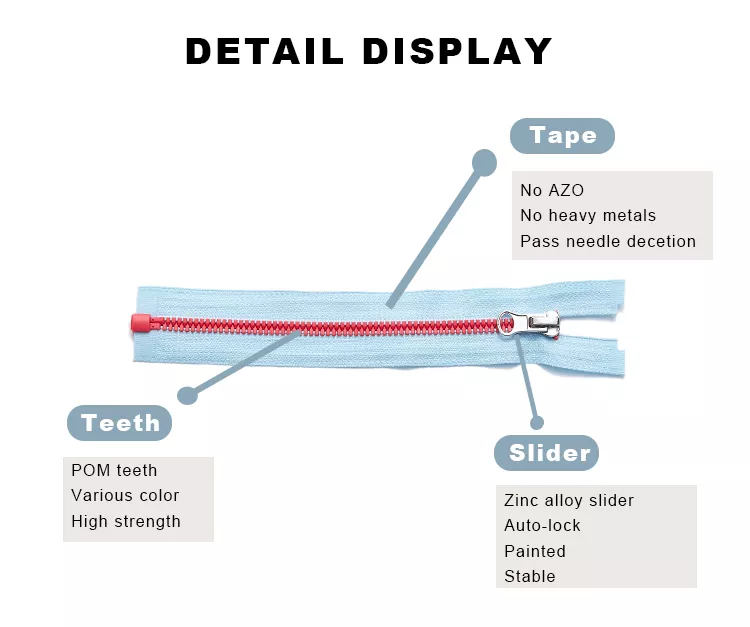 Som en professionell blixtlåsleverantör fokuserar TRC på precision, hållbarhet och konsekvens, och hjälper varumärken att uppnå de dubbla målen prestanda och designflexibilitet i sina produkter. Tack vare sin jämna kvalitet och utsökta hantverk har TRC blivit en pålitlig tillverkare av blixtlås i Kina, som konsekvent tillhandahåller pålitliga hartsdragkedjor för modekläder, friluftskläder, väskor och accessoarer.