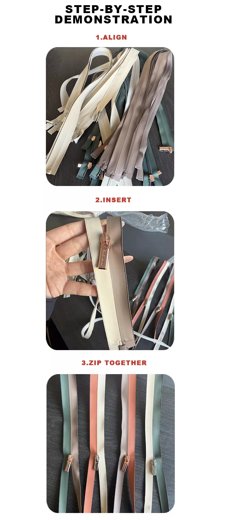 Traditionella nylon- och vattentäta dragkedjor måste användas i matchade par. Detta kräver manuell sammankoppling, märkning och batchkontroll av de två dragkedjorna under tillverkningsprocessen, vilket avsevärt ökar arbetskostnaderna, komplicerar lagerhanteringen och begränsar effektiviteten i automatiserad produktion. När det gäller service efter försäljning kräver skador på ena sidan av blixtlåset vanligtvis att hela blixtlåset byts ut, vilket leder till högre underhållskostnader och materialspill.